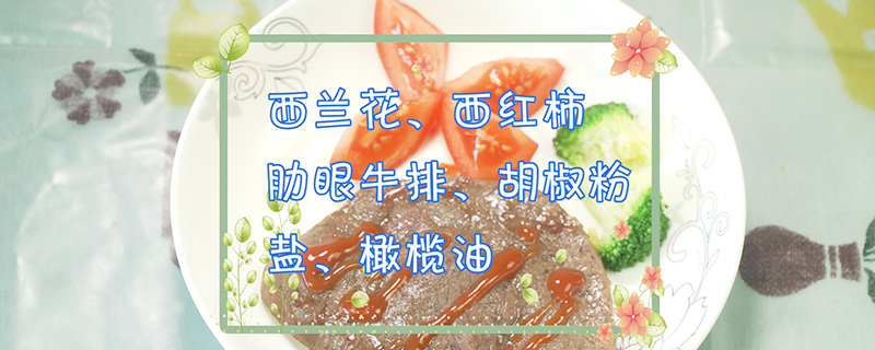 准备食材:西兰花、西红柿、肋眼牛排、胡椒粉盐、橄榄油