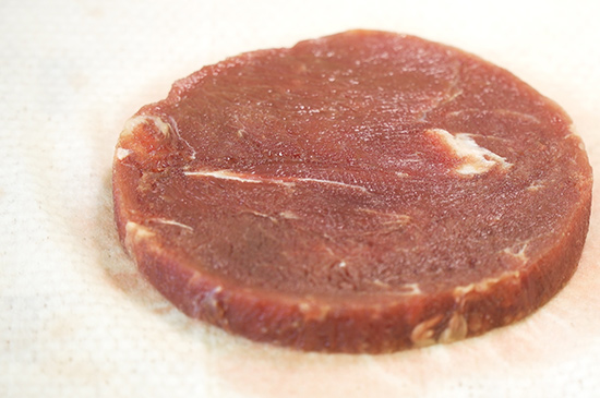 1、西兰花切小朵,将牛排拿出静置在厨房纸上10分钟,之后将牛肉表面水分吸干,加入微量的盐、胡椒粉。