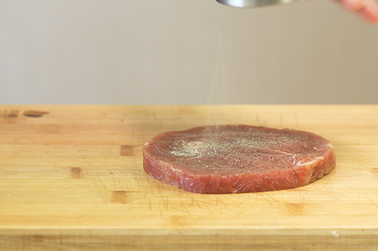 2、 加入微量的盐、胡椒粉,将正反面拍打均匀,再加入适量橄榄油至表面,并涂抹均匀。