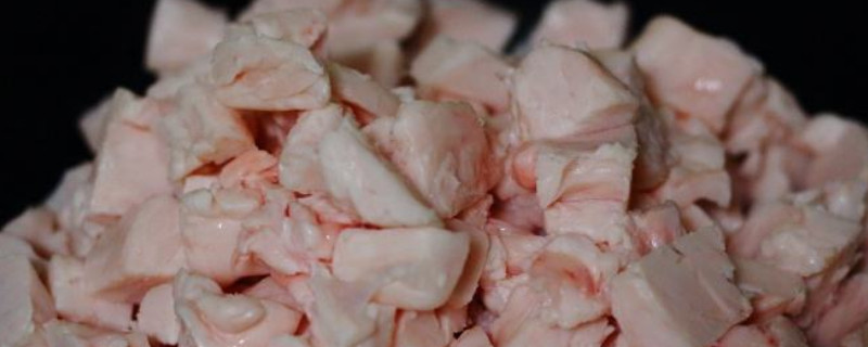 先将买好的猪板油用刀刮去猪板油表面的污垢,盛一盆温水,用温水将猪板油上的血渍杂质清洗干净。将清洗干净的猪板油晾干,晾干后用刀将其切成大小均匀的块状。