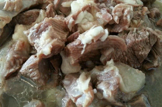 把锅清洗干净加热,加入一锅冷水,将泡好的的牛肉块下到锅中,先过一道水,水稍微有点烫即可。过一道水会煮出很多浮沫,一定程度上能减轻牛肉的腥味。牛肉过水后,将牛肉捞出,将锅中含有大量浮沫的水倒掉,将锅洗干净。