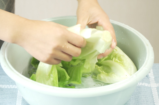 1、生菜摘洗干净,大蒜切碎,生抽、蚝油、淀粉和水调成酱汁备用。