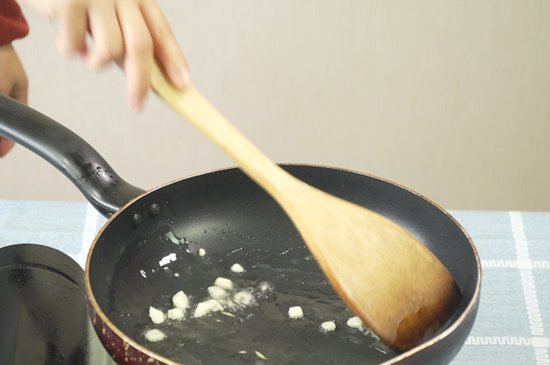 4、起锅烧油,油热后倒入大蒜炒出香味,再倒入调好的酱汁烧开煮沸1分钟。