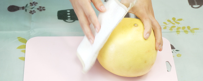 1、西柚用清水清净擦干水分放在案板上,同时备好水果刀。