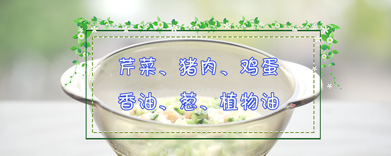 准备食材:芹菜、猪肉、鸡蛋、香油、葱、植物油。