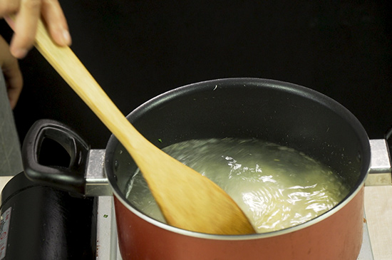 2、起锅烧水,水烧开后放入小米和米煮十几分钟,期间适当搅拌避免粘锅。