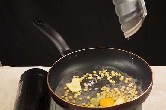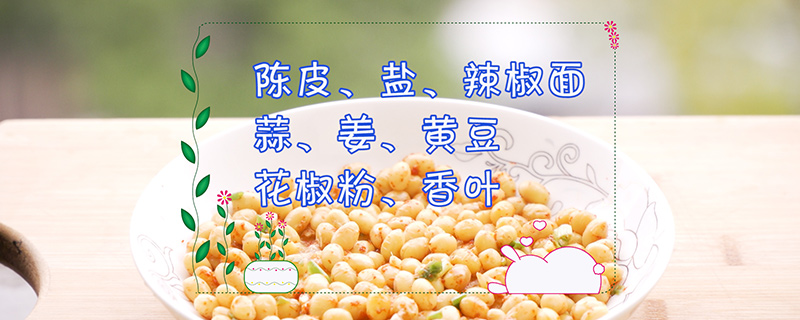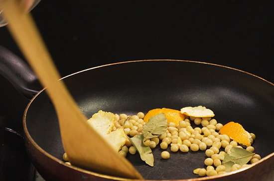 1、黄豆放入锅内小火干炒片刻,放入陈皮、香叶炒出香味后盛出。