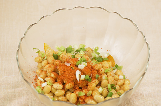 4、煮好的黄豆和适量盐、辣椒面、葱、姜、花椒粉搅拌均匀晾晒几天,美味的豆豉就做好了。