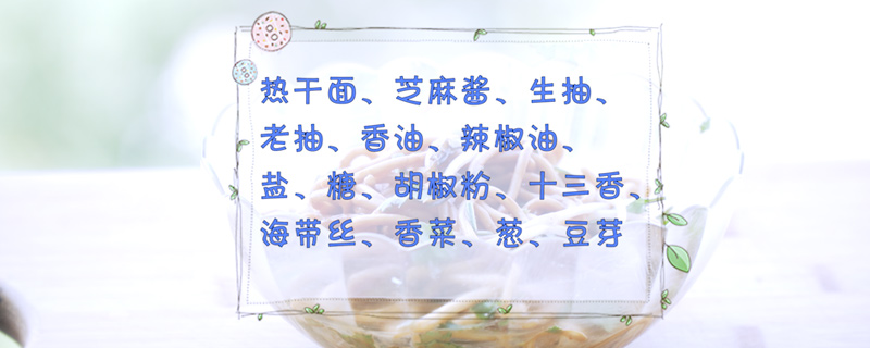 起锅烧水放入碱面煮至8成熟关火,再捞出装入碗内备用。最后往碗内倒入调好的酱汁搅拌均匀,放入豆芽、葱花、香菜、海带丝搅拌均匀,美味的热干面就完成了。
