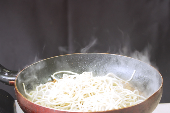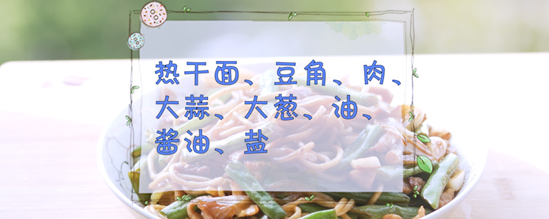 准备食材:热干面、豆角、肉、大蒜、大葱、油、酱油、盐。