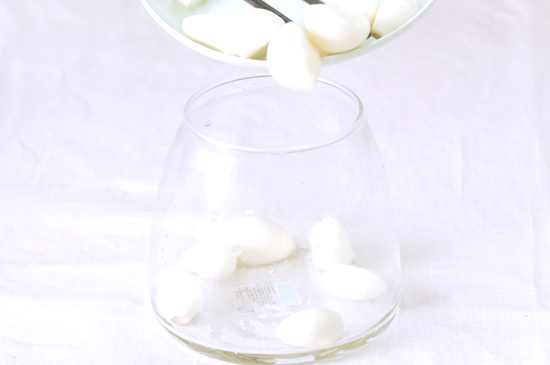 3、浸泡好的大蒜取出控干水分,放入罐子后,倒入糖醋水没过大蒜并盖上盖子密封。