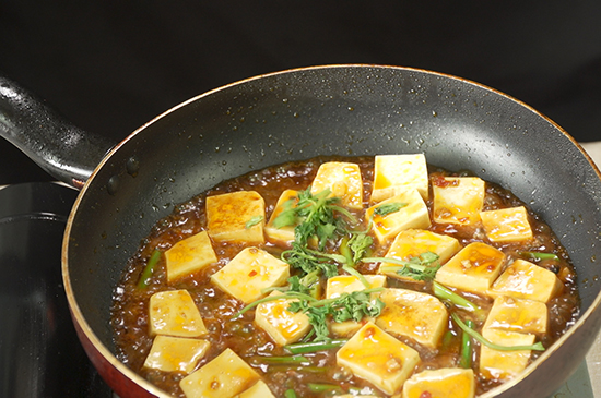 5、最后加入香菜段,美味的红烧豆腐就做好了。