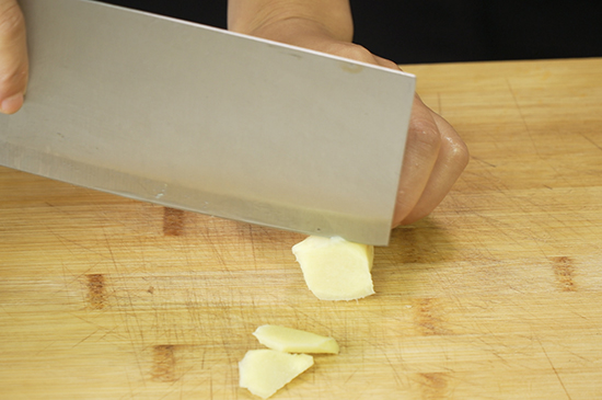 2、五花肉洗净后放入锅中,加入生姜、花椒和水煮熟后捞出冷却切片备用。