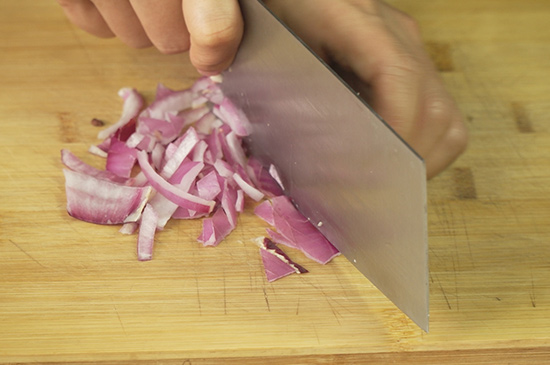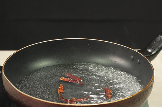 2、起锅烧水,水烧开后放入干辣椒煮3~4分钟,再捞出沥干水分切末。