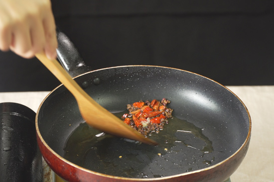 4、锅内留少量油烧至5成热后,放入干辣椒盒花椒炒出香味,再捞出干辣椒和花椒备用。