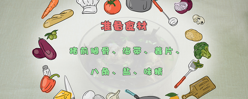 准备食材:猪前腿骨、海带、姜片、八角、盐、味精。