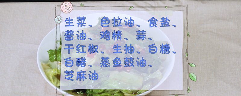 准备食材:生菜、色拉油、食盐、酱油、鸡精、蒜、干红椒、生抽、白糖、白醋、蒸鱼鼓油、芝麻油。