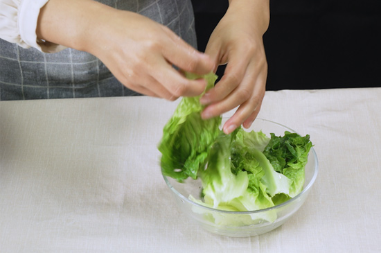 1、生菜摘洗干净用淡盐水浸泡,捞出撕成小块后,放入凉白开内浸泡15分钟,再捞出沥干水分备用。