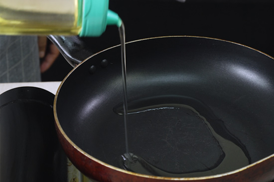 2、起锅烧油,油热后放入干红椒炒出香味,再关火。
