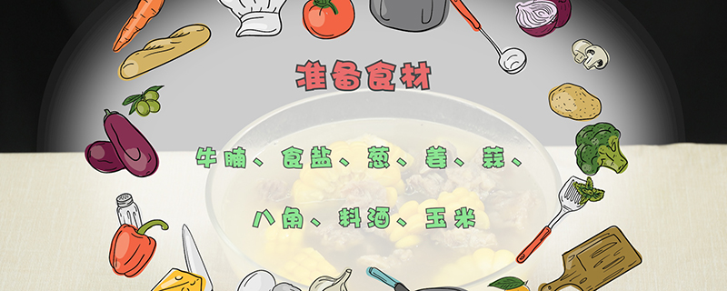 准备食材:牛腩、食盐、葱、姜、蒜、八角、料酒、玉米。