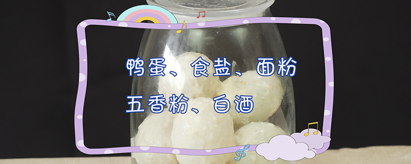准备食材:鸭蛋、食盐、面粉、五香粉、白酒。