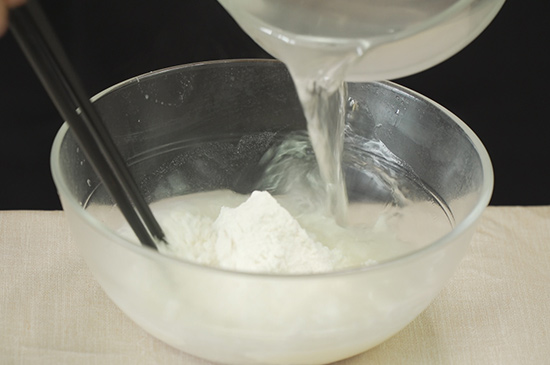 1、面粉加适量热水调成糊状,再加入少量五香粉和白酒搅拌均匀。