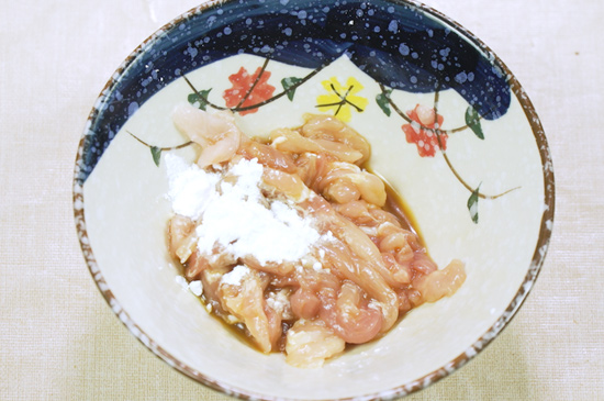 2、肉丝加入生抽拌匀,再放入淀粉拌匀静置腌一段时间。