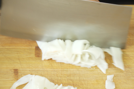 1、凉粉切条,蒜切末,青椒切碎备用。