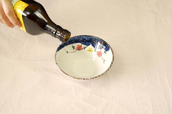 3、塞入肉馅的茄片两面裹匀面粉后,再沾上蛋液。同时将料酒、酱油、白糖、醋和水搅匀制成料汁。