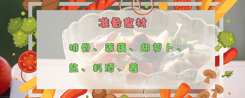准备食材:排骨、莲藕、胡萝卜、盐、料酒、姜。