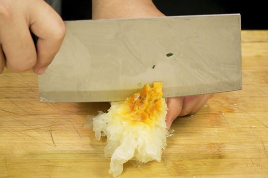 自制不加酒的香蕉酒需要先将香蕉外皮去掉,切成块状或直接打碎成泥状,装入发酵罐中,取适量冰糖以及少许清水放置锅中熬煮融化,倒入发酵罐中