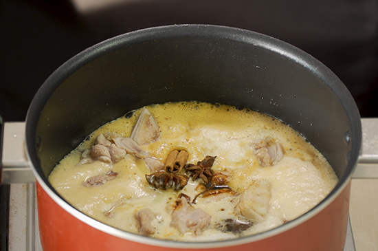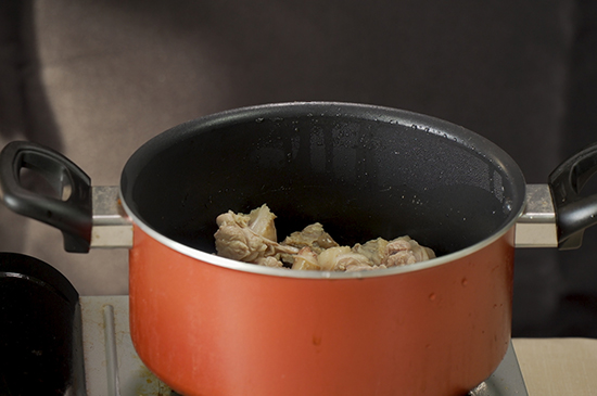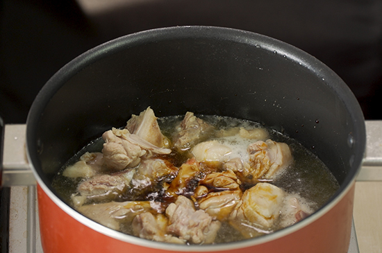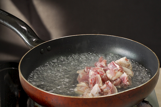2、鸭肉块倒入锅内,加入啤酒至刚好没过鸭肉快。