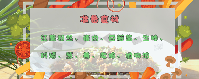 准备食材:红薯粉丝、瘦肉、豆瓣酱、生抽、料酒、葱、姜、老抽、植物油。