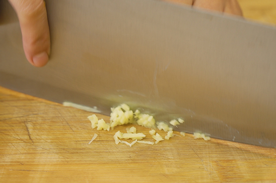 3、生抽、香醋、葱花、姜末、蒜末和香油调成料汁。