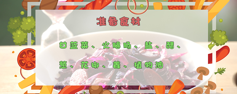 准备食材:甘蓝菜、火腿肠、盐、醋、葱、花椒、姜、植物油。