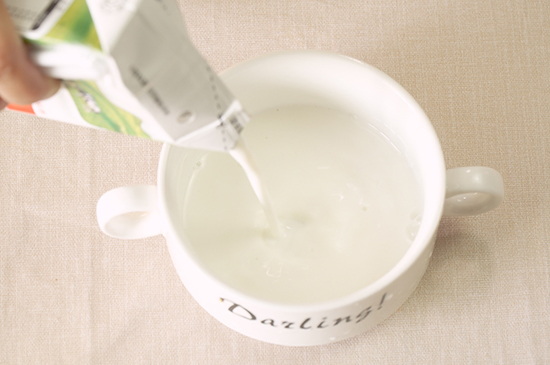 1、细砂糖倒入盆内,牛奶倒入盆内,再用打蛋器搅拌至细砂糖完全融化。