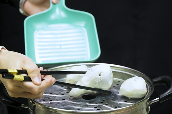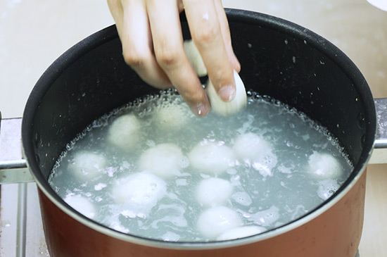 4、最后将芋圆放入高汤内煮熟,美味的芋圆就做好了。