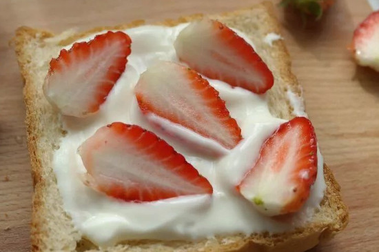 准备好吐司片,坚果,草莓洗净切片,香蕉去皮切片。将发酵好的酸奶厚厚的一层平铺在吐司表面,然后把香蕉片和草莓片摆上去,再把坚果用擀面杖擀碎,洒在水果片上,酸奶土司就做好了,好吃又简单。