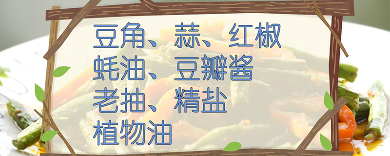 准备食材:豆角、蒜、红椒、蚝油、豆瓣酱、老抽、精盐、植物油。