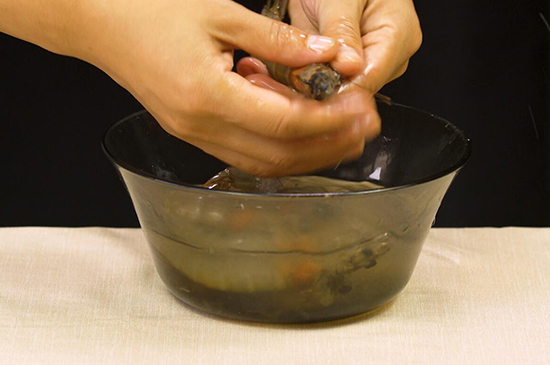 1、虾剪掉虾须后清洗干净,姜切片备用,葱切段备用。