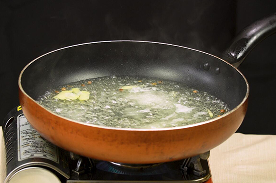2、起锅烧水,同时往锅内放入盐、花椒、姜片慢火烧慢火烧开。