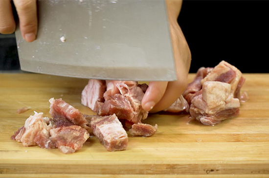 2、切好的牛腩块放入锅内,加入适量清水中火煮开去掉血沫,再捞出盛好。