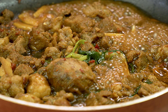 切好的牛腩放入锅内加水煮去血沫后,重新放入干净的锅内,同时加入料酒、酱油、葱结、姜片、十三香、豆瓣酱、料包大火烧开。最后转小火焖炖30分钟左右,牛肉炖熟软烂后撒盐调味,美味的炖牛肉就完成了。