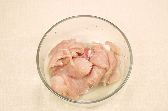 2、切好的肉片与盐、料酒腌制一段时间,腌制好后裹上玉米淀粉。