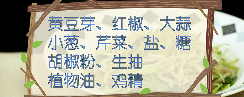 准备食材:黄豆芽、红椒、大蒜、小葱、芹菜、盐、糖、胡椒粉、生抽、植物油、鸡精。