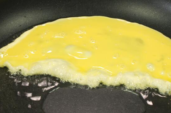 2、起锅烧油,油热后倒入鸡蛋液煎熟,再盛出备用。