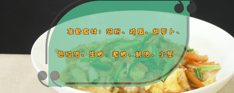 准备食材:河粉、鸡蛋、胡萝卜、色拉油、生抽、老抽、蚝油、小葱。