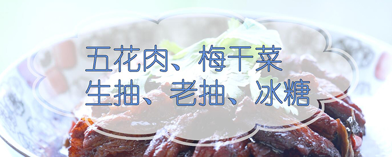 准备食材:五花肉、梅干菜、生抽、老抽、冰糖、腐乳汁、蚝油、食用油、葱、姜、蒜、辣椒。