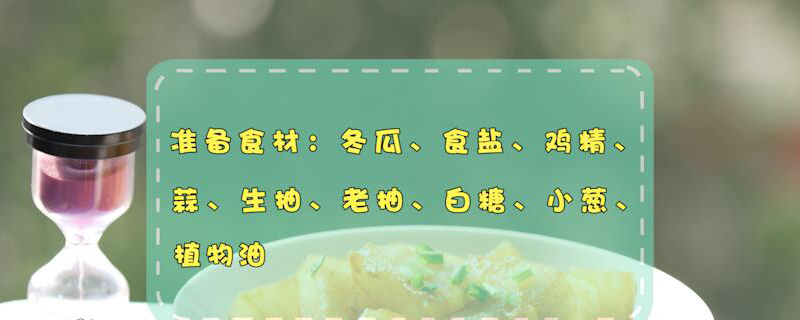 准备食材:冬瓜、食盐、鸡精、蒜、生抽、老抽、白糖、小葱、植物油。
