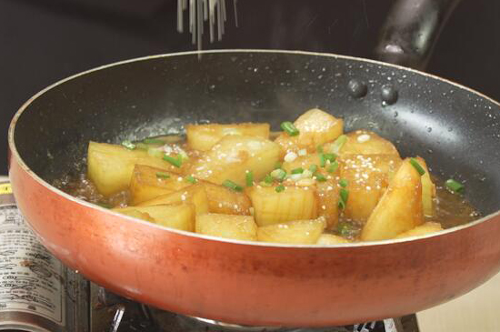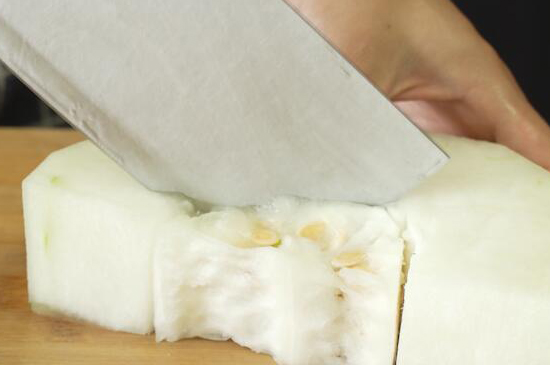 起锅烧油放入蒜炒出香味后,放入冬瓜煎至微黄,再依次放入食盐、生抽、老抽、白糖和适量水盖锅大火烧开,转中火煮至冬瓜熟透,最后撒上葱花和鸡精,一份美味的红烧冬瓜就完成了。